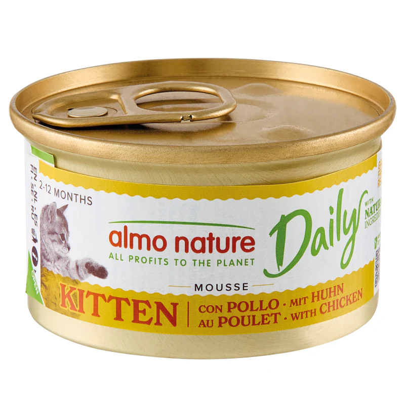 I prodotti Almo Nature Daily Cat non hanno conservanti chimici (BHA, BHT), aromi artificiali e senza coloranti o OGM.