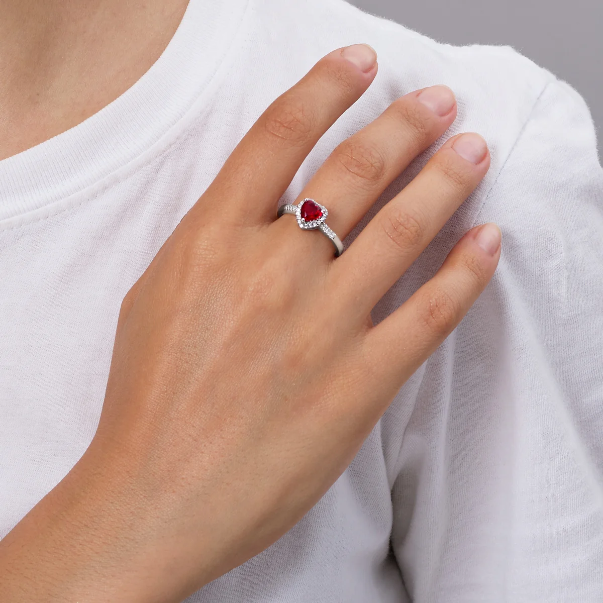 Anello in AG925 zircone rubino e zirconi bianchi – Rodio – Due misure adattabili: Misura 12/14 – Misura 16/18 – Ø 0,9 cm