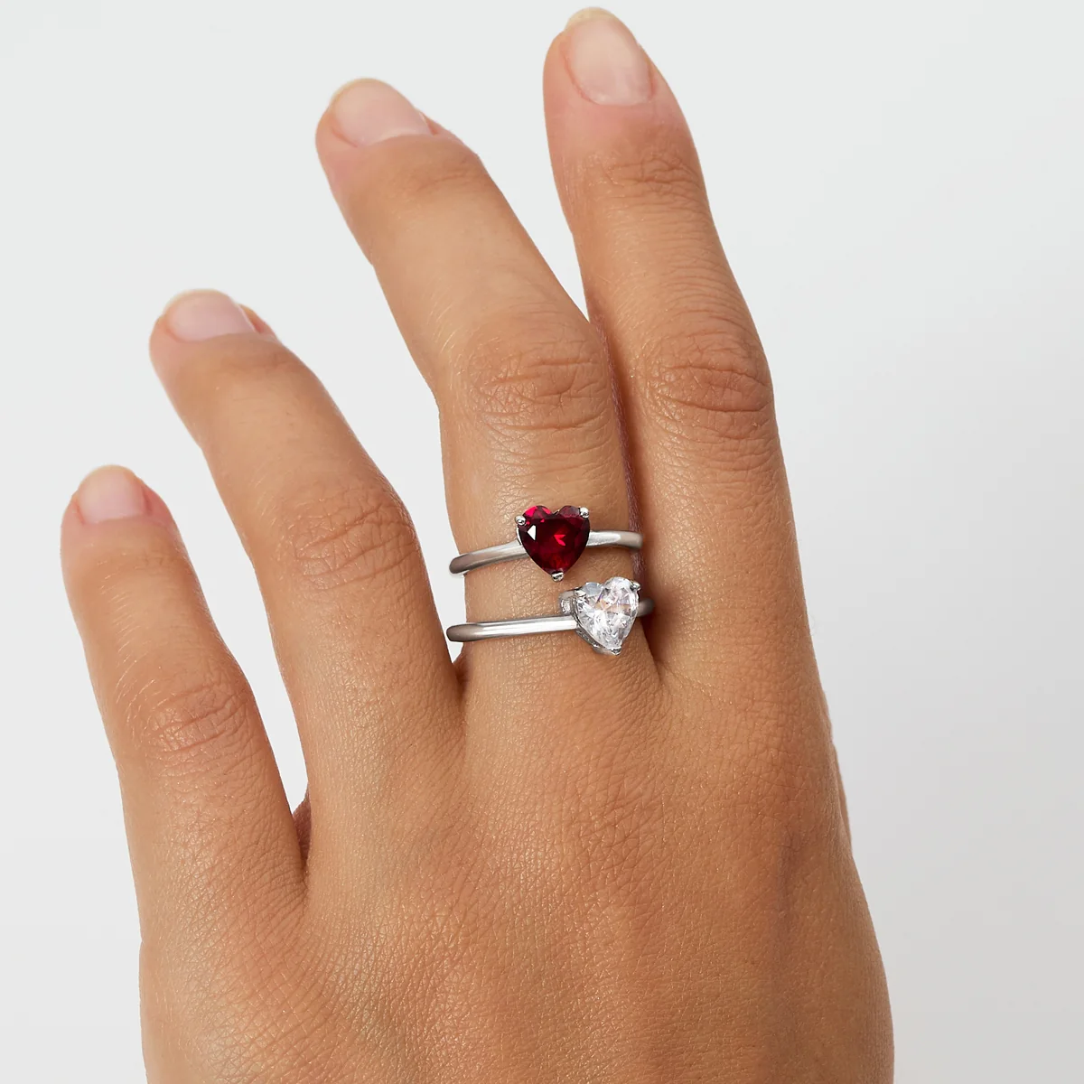 Anello solitario in argento 925 rodiato con zircone rosso taglio cuore da 6 mm. L’anello è regolabile ed è disponibile in due misure che coprono le taglie dalla 10 alla 14 e dalla 16 alla 20.