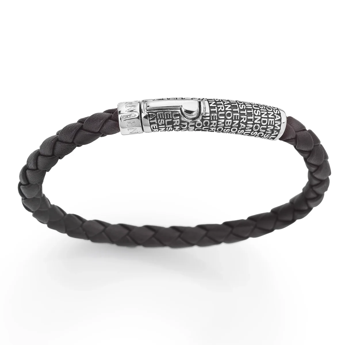 Bracciale Pater Noster In vera pelle naturale- Inserto con incisione preghiera Pater Noster Argento 925 – Apertura con bottone a pressione ricavato Sull’incisione lettera “P” – Taglie M: 19,5 cm / L: 20,5 cm