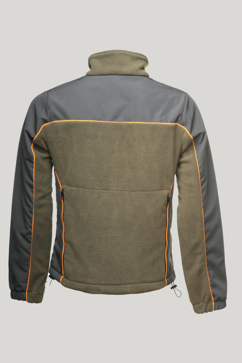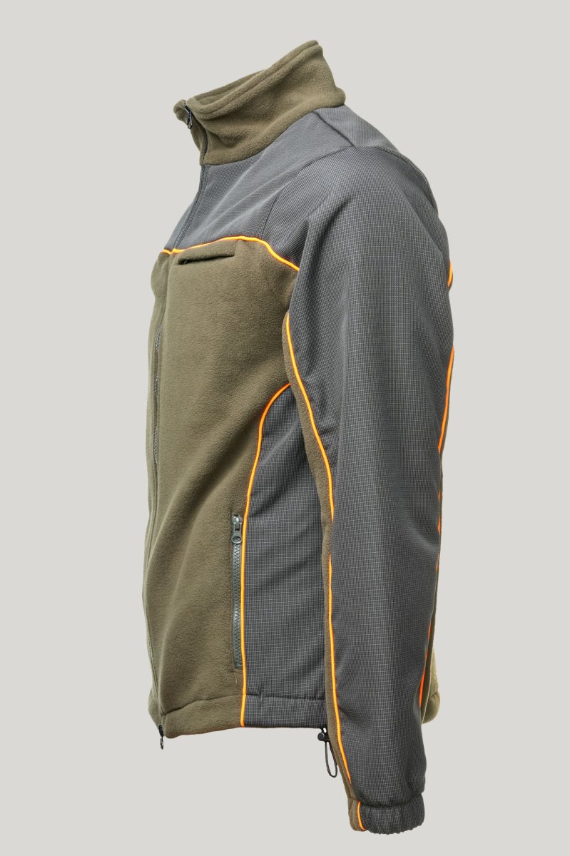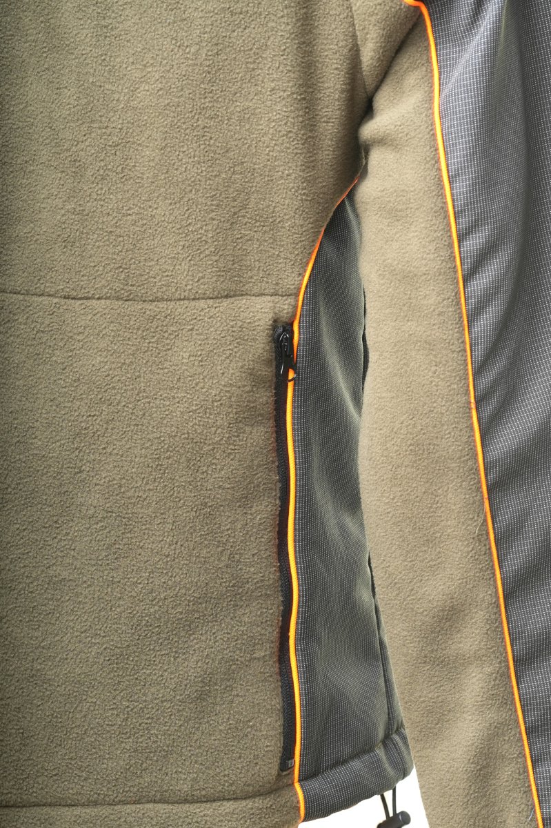 Felpa da 340 gr, morbido, caldo e antipilling. Adatto a molteplici utilizzi. Da indossare sotto la giacca e preservare la temperatura corporea. Applicazioni di tessuto tecnico di protezione, impermeabile e anti spino. Disponibile sia total green che con dettagli arancioni alta visibilità.