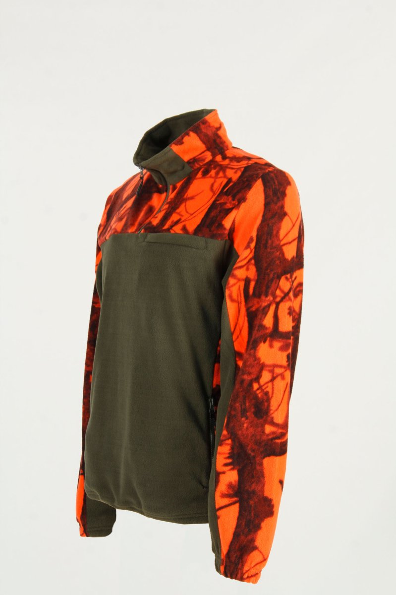 Felpa bicolore 340gr, verde e arancio bosco, morbido, caldo e antipilling. Utilizzabile sia in casa per preservare la temperatura corporea, o come sotto giaccone per avere maggiore calore.
