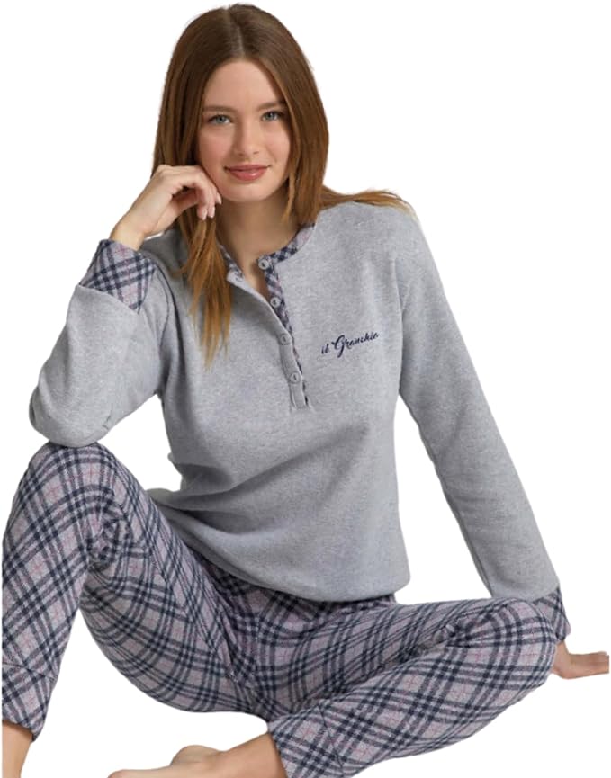 - MASSIMO COMFORT: Questo pigiama donna invernale è progettato per offrire il massimo comfort durante l’uso quotidiano. Il tessuto punto milano crea uno strato termico isolante che trattiene il calore corporeo, mantenendoti al caldo nelle fredde mattine invernali. Pigiama donna che si adatta delicatamente al tuo corpo, offrendoti una sensazione di relax e benessere senza pari.