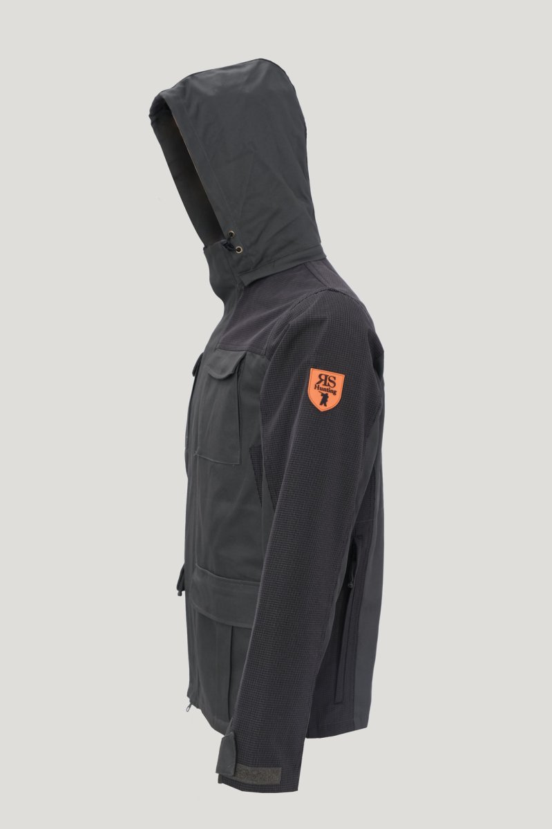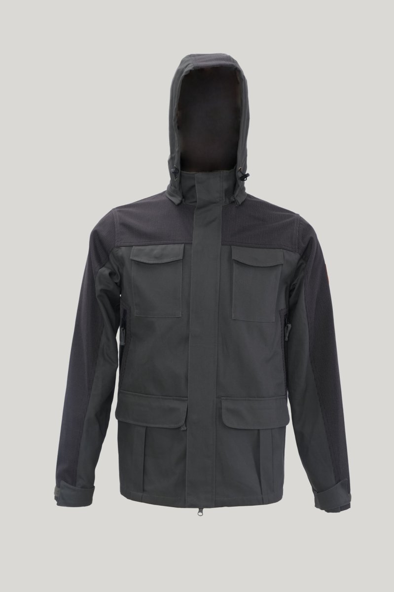 Giacca verde in tessuto canvas di cotone con protezioni in tessuto tecnico con trattamento impermeabile. Disponibile anche nella colorazione con profili alta visibilità. Dotata di cappuccio rimovibile con zip, due tasche al petto, due sui fianchi e due al fondo. Sul retro è dotato di ampio carniere. All’interno c’è una fodera in cotone e bretelle interne per poterla portare in spalla. Consigliamo l’utilizzo della giacca in autunno e inverno.