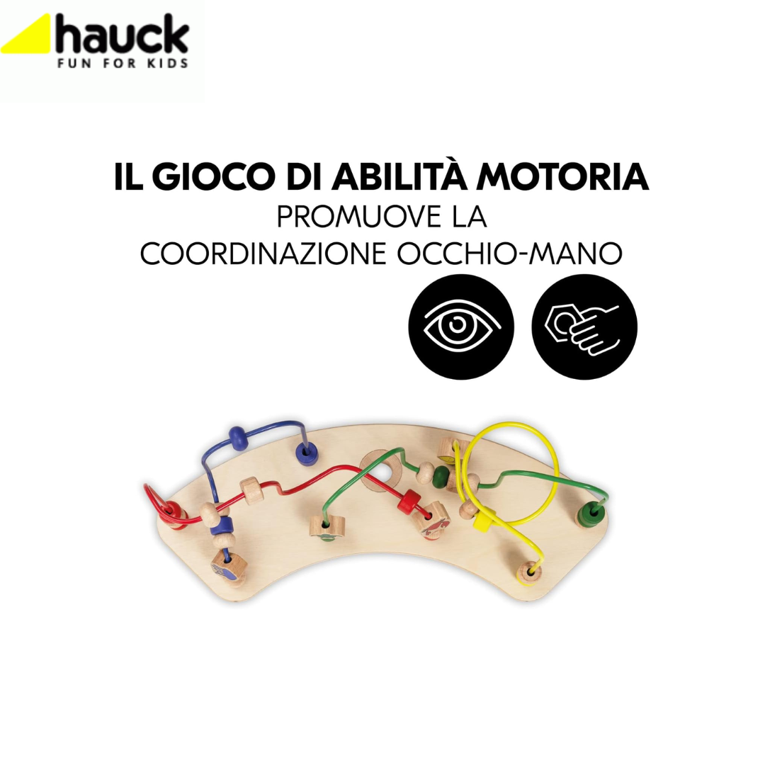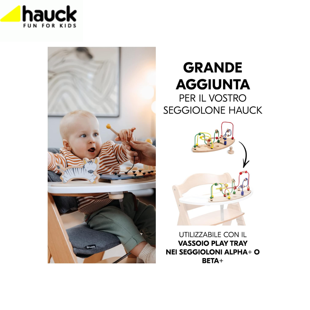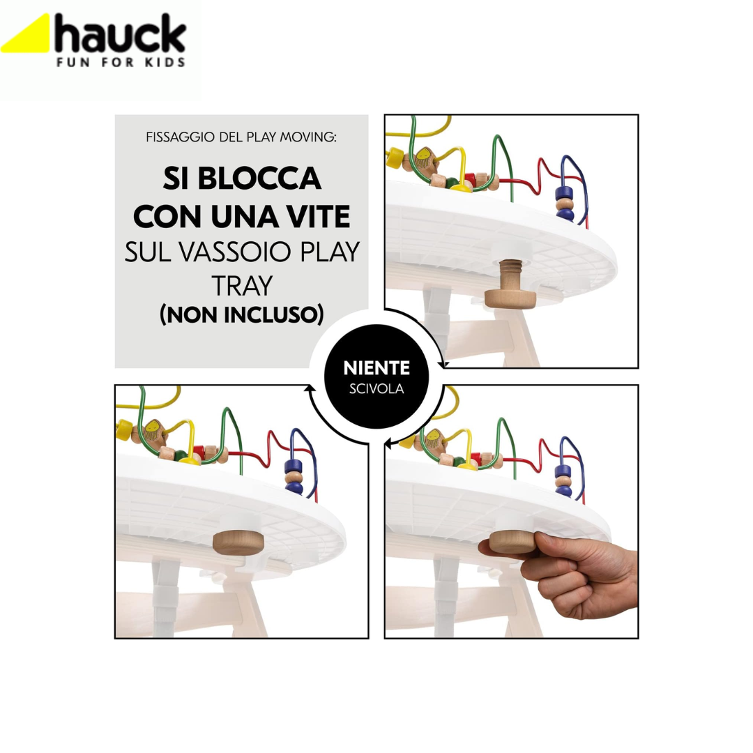 - Il play tray può essere combinato con max due set gioco legno per bambini hauck (acquistabili separatamente e intercambiabili), in modo che il bimbo possa allenare diverse abilità.