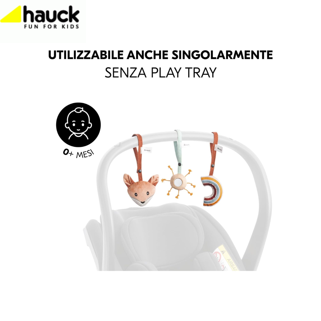 - Il vassoio gioco legno si abbina fino a tre set gioco hauck e possono essere acquistati separatamente e sono intercambiabili, così il bambino potrà allenare diverse abilità.