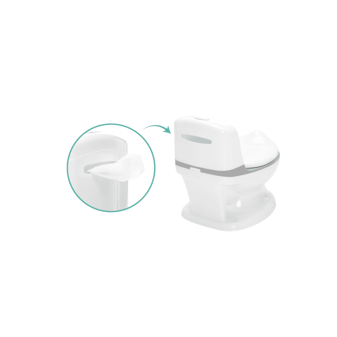 - Simile alla toilette di un adulto, con coperchio e divertente cisterna.