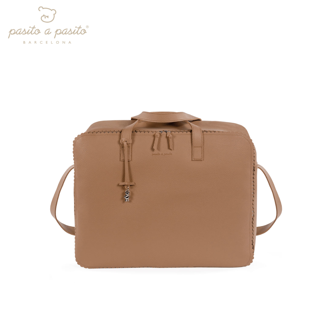 La valigetta per neonati Icon di Pasito a Pasito è la borsa perfetta per l’ospedale/clinica, un modello unico e alla moda appositamente progettato per te, il papà, e il bambino. È realizzato in ecopelle resistente e morbida. La sua forma rettangolare offre comfort per coprire tutte le tue esigenze (pigiama o accessori) durante il giorno del parto del bambino. È un design semplice, moderno e pratico che offre ampio spazio per trasportare molte cose ed ha un’apertura comoda per facilitare la ricerca di ciò che hai riposto. Viene fornito con una maniglia lunga da appendere sulla spalla e due maniglie corte per il trasporto a mano, se preferito. Finiture di alta qualità. La valigetta ospedaliera è dotata di fodera interna con elastici per mantenere i vestiti e si chiude in modo sicuro con una cerniera bidirezionale che consente di aprire completamente il coperchio. Realizzato con materiali di alta qualità, privi di coloranti azoici, ftalati e sostanze nocive per la salute. Inoltre, può essere lavato a mano o in lavatrice a temperature fino a 30º. La collezione “ICON” è caratterizzata da un lavoro meticoloso, sempre progettato da un punto di vista pratico. Utilizzando materiali di alta qualità per enfatizzare l’eleganza e l’armonia in ciascuno dei loro pezzi. Questi modelli sono esclusivi e hanno uno stile inconfondibile, progettato per le moderne mamme che hanno buon gusto e apprezzano i dettagli. Specifiche: Materiali: Ecopelle. Colore: Beige. Misure: 44X36X16 cm. Composizione: 100% PVC.