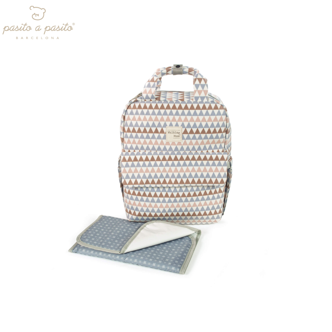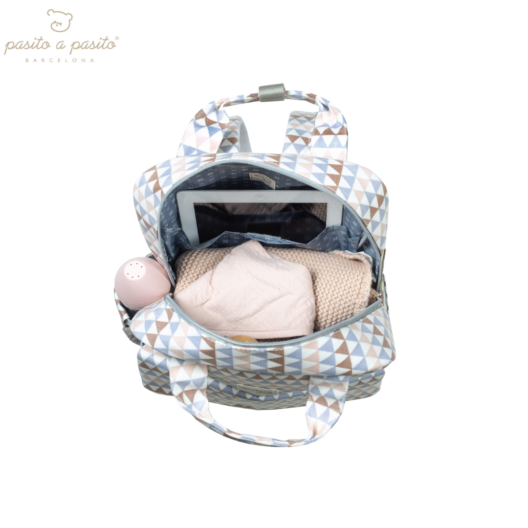 Zaino per passeggino Oliver di Pasito a Pasito, con stampa geometrica, moderno, sportivo e urbano, di grande capacità per trasportare tutto il necessario per il tuo bambino. Dispone di utili tasche per avere tutto in ordine. La borsa ha un sistema d’attacco universale per appendere in qualsiasi modello di passeggino.