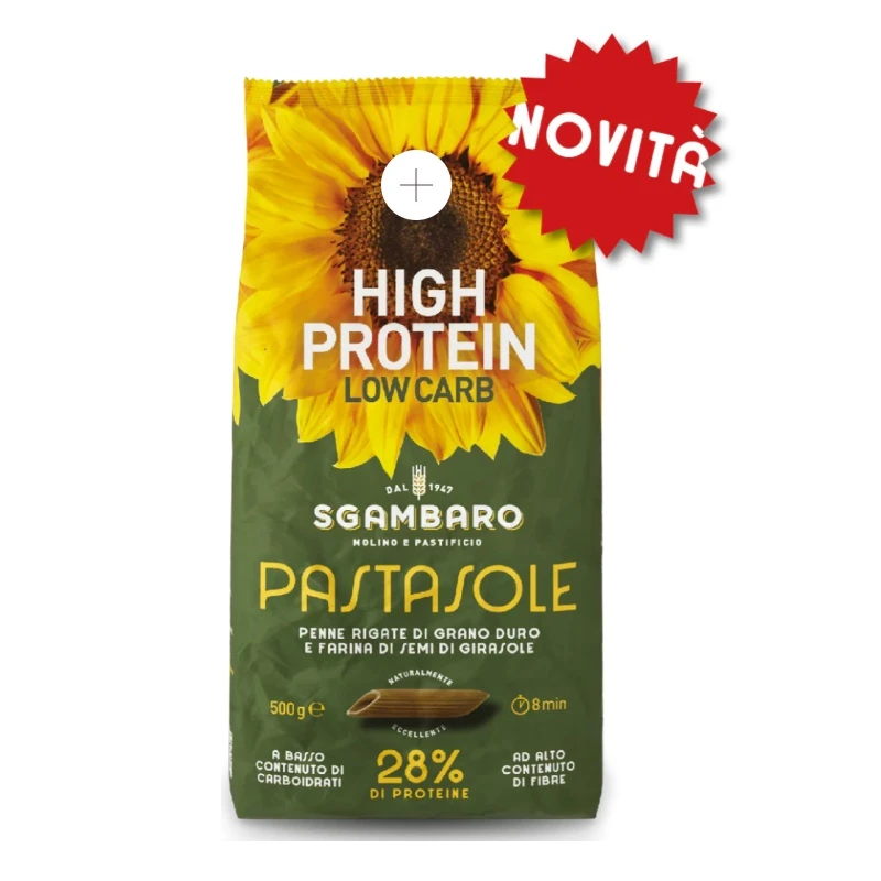 PASTASOLE del Pastificio Sgambaro è la prima pasta prodotta con farina di semi di girasole e semola di grano duro, per chi pensa al proprio benessere ed ama farlo in modo naturale, gustoso e sostenibile.