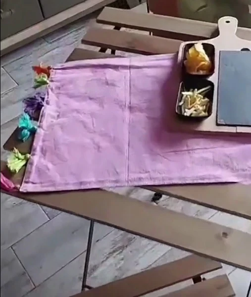 Le nappine colorate agli angoli donano un tocco vivace e artigianale, rendendo ogni pezzo unico e perfetto per rinnovare la mise en place con personalità.
