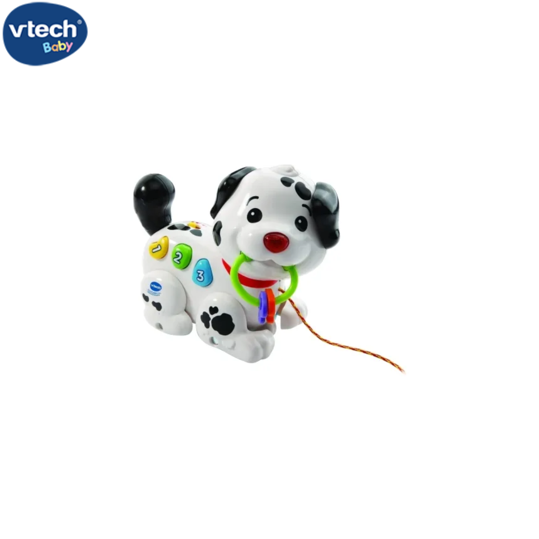 • 3 bottoni sul corpo del cagnolino per scoprire i primi numeri, i colori, frasi e canzoni divertenti.